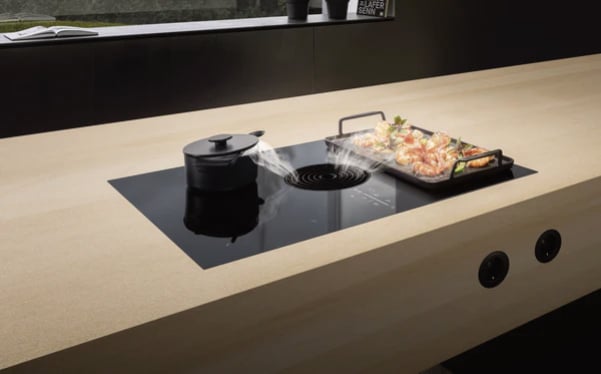 Toujours silencieux, même à plein régime : le système repose sur une canalisation d’évacuation optimisée et un ventilateur extrêmement silencieux. Il ne perturbe ainsi ni la concentration, ni les conversations pendant la préparation des repas.